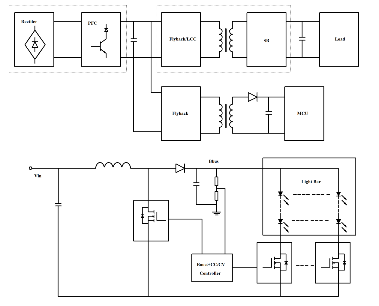 应用说明 彩电液晶屏的背光照明系统由发光部件、导光板和背光电源构成。背光电源功率一般为100-500W,其作用就是将市电的交流电压转换成12V的直流电压输出,从而向显示器供电。一般拓扑结构会采用PFC、LLC、SR、Falyback、BOOST+CC/CV拓扑等。江苏米乐登陆入口-米乐online(中国)能提供不同表面贴装的高压和低压MOSFET,满足整机的轻便、能效高的需求。